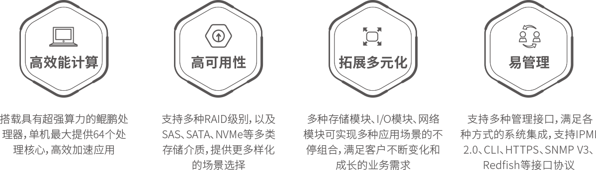 鸿越资本 KunTai R721高密服务器是神州数码基于鲲鹏基础硬件推出的新一代高密度计算设备。其具备高效能计算、安全可靠与开放生态优势。